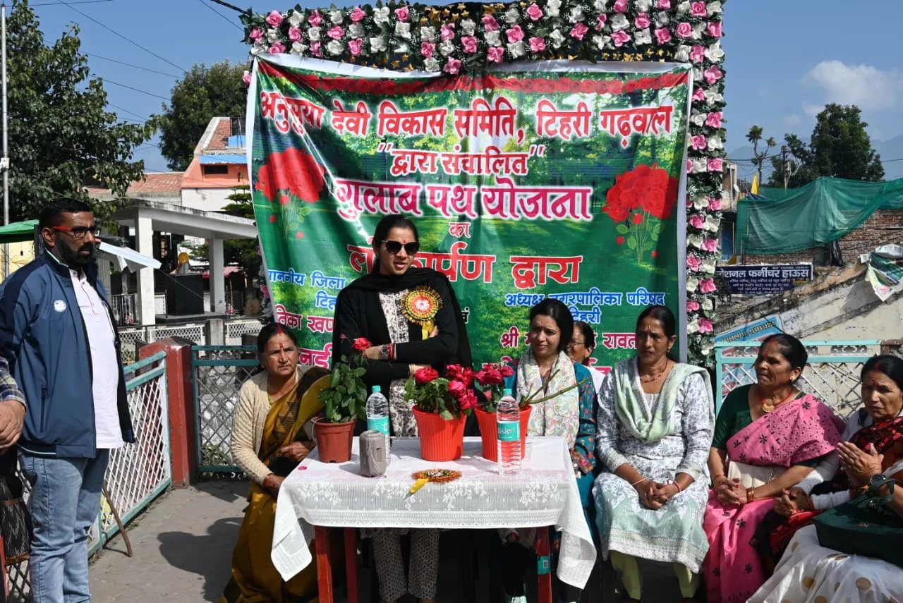 टिहरी : आज रविवार को जिलाधिकारी टिहरी गढ़वाल नितिका खण्डेलवाल ने सांई चौक नई टिहरी पहुंचकर अनुसूया देवी विकास समिति टिहरी द्वारा संचालित गुलाब पथ योजना का दीप प्रज्वलित कर लोकार्पण किया। इस दौरान उन्होंने रिबन काटकर गुलाब के पौधे में जल सींचन किया।
