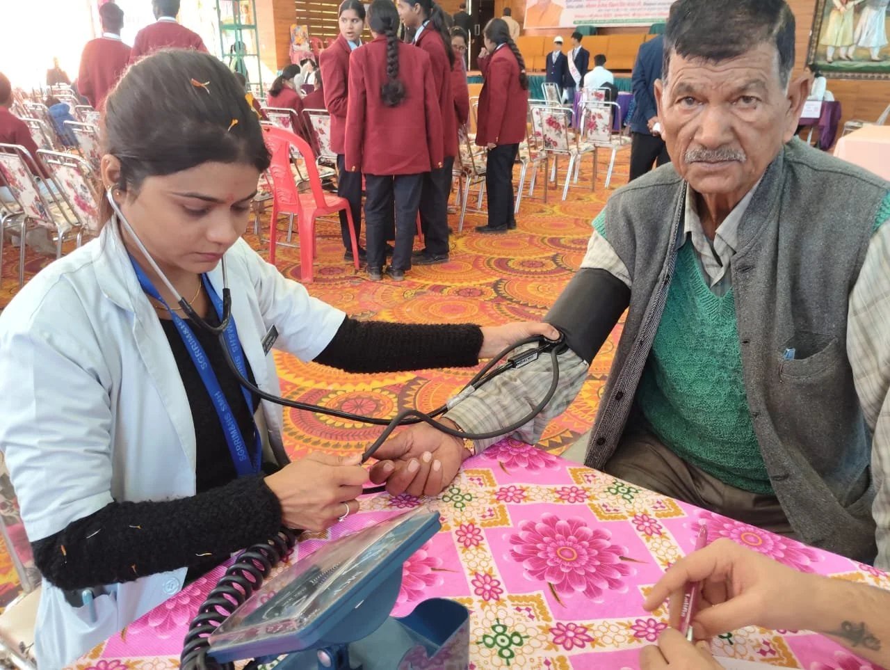श्री महंत इन्दिरेश अस्पताल की ओर से रोगियों की निःशुल्क ई.सी.जी. जॉच, ब्लड शुगर जॉच एवं ब्लड प्रैशर जॉच की गई। श्री महंत इन्दिरेश अस्पताल की ओर से रोगियों को निःशुल्क दवाईयों भी वितरित की गईं।