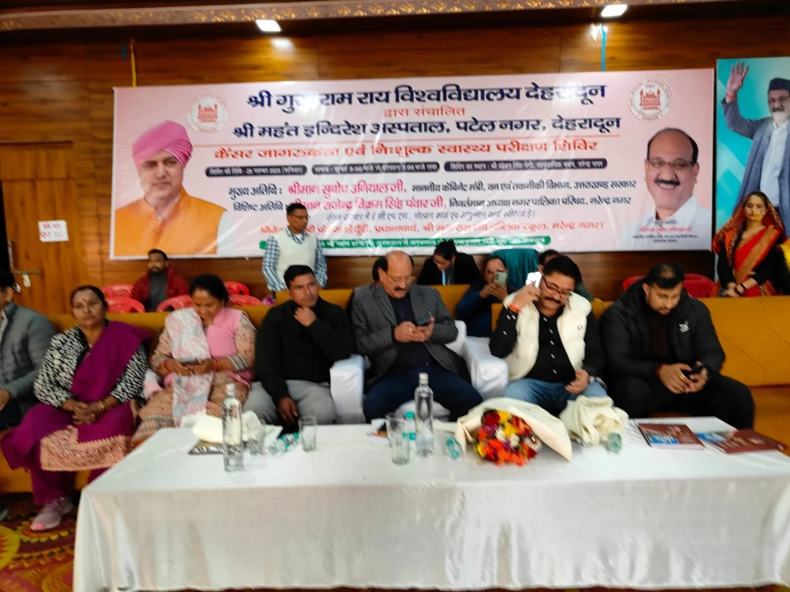 देहरादून। श्री गुरु राम राय विश्वविद्यालय एवं श्री महंत इन्दिरेश अस्पताल, देहरादून के सौजन्य से सोवन सिंह नेगी, सामुदायिक भवन, नरेन्द्र नगर में शनिवार, 29 नवम्बर 2025 को कैंसर जागरूकता एवं निःशुल्क स्वास्थ्य परीक्षण शिविर का सफल आयोजन किया गया। इस अवसर पर 1880 मरीजों ने शिविर का लाभ उठाया। शिविर में अस्पताल के विशेषज्ञ चिकित्सकों ने स्वास्थ्य परामर्श दिया तथा रोगियों को निःशुल्क दवाइयाँ वितरित की गईं।