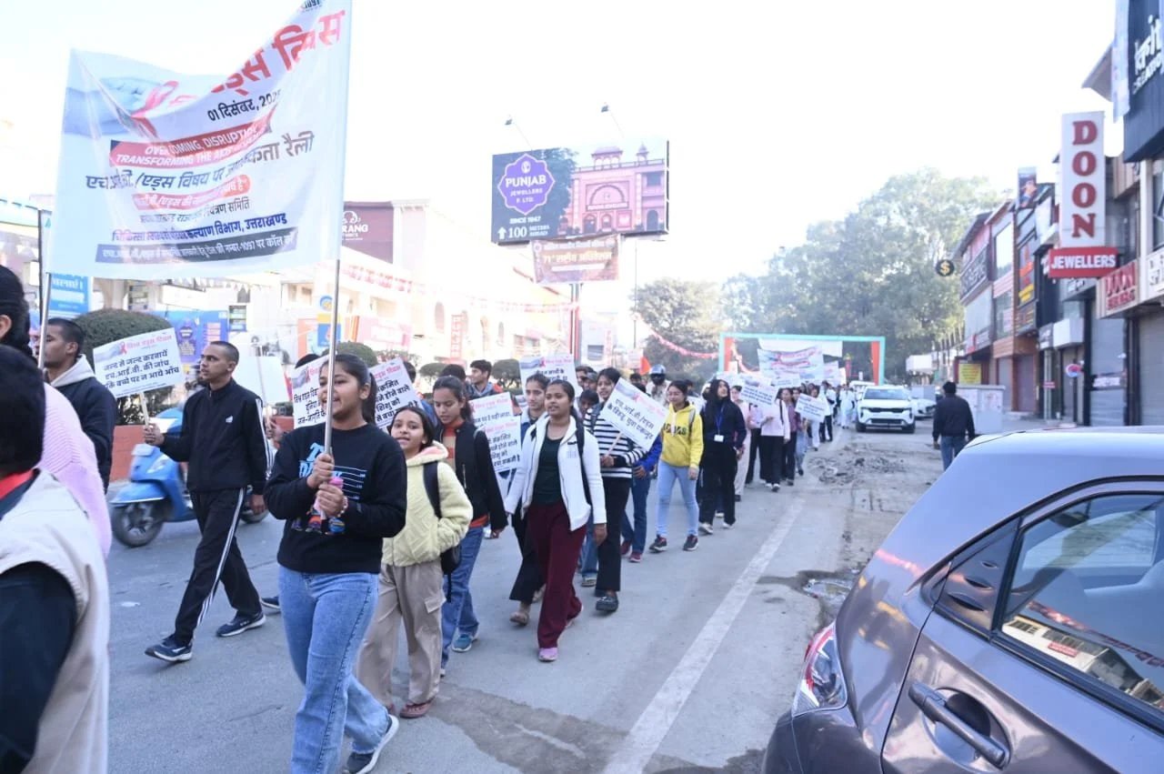 रैली गांधी पार्क से प्रारंभ होकर घंटाघर, दर्शनलाल चैक, दून चैक, बुद्धा चैक, परेड ग्राउंड से गुजरते हुए पुनः गांधी पार्क में सम्पन्न हुई। मार्गभर छात्रों, सामाजिक संगठनों, स्वयंसेवियों और नागरिकों ने एचआईवी/एड्स के प्रति जागरूकता फैलाने वाले नारे, पोस्टर और बैनर के माध्यम से जनसंदेश दिया। लोगों को सुरक्षित व्यवहार, संक्रमण के कारणों और उपलब्ध उपचार के बारे में जानकारी देते हुए प्रतिभागियों ने समाज को वैज्ञानिक तथ्यों से अवगत कराया।