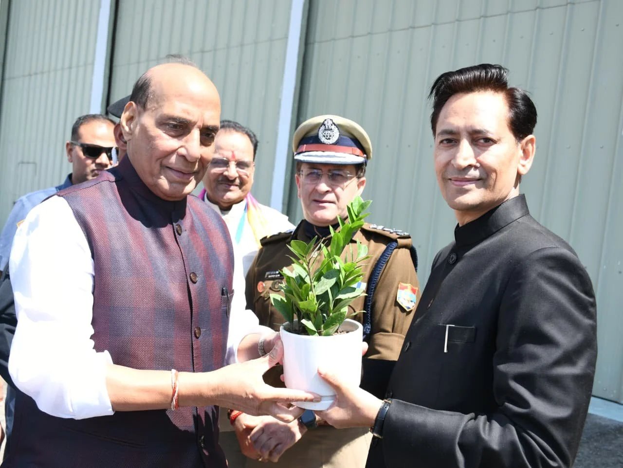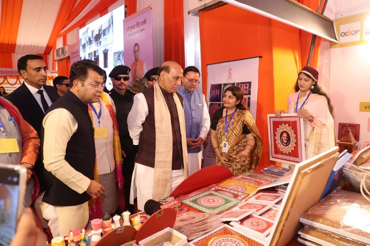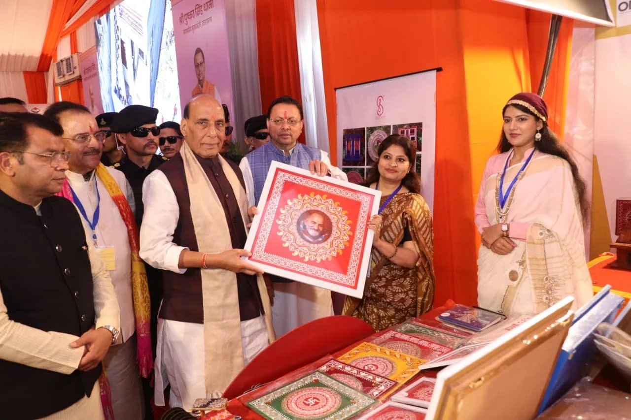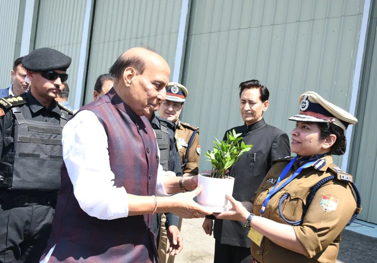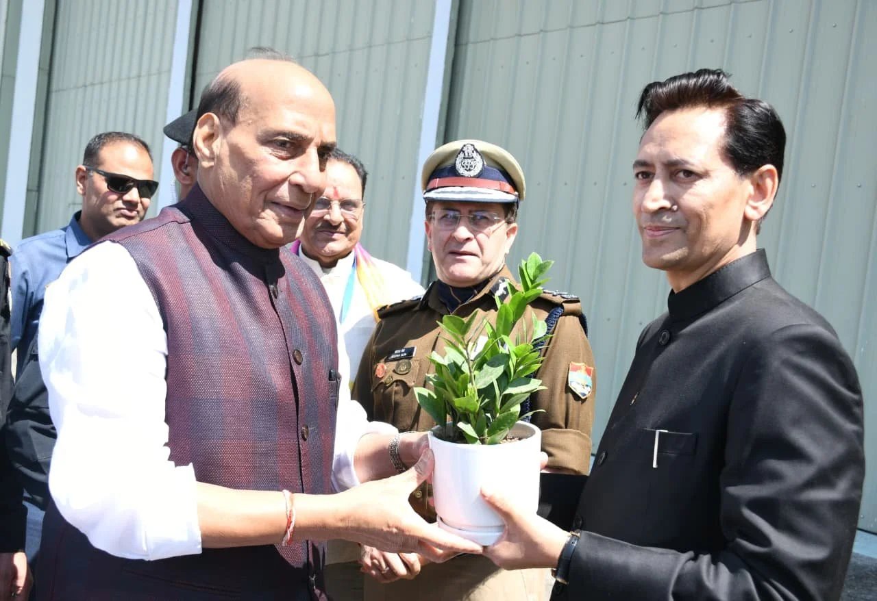 हल्द्वानी : जनपद नैनीताल के हल्द्वानी आगमन पर रक्षामंत्री राजनाथ सिंह के आर्मी हैलीपेड हल्द्वानी आगमन पर सांसद अजय भटट, पुलिस महानिदेशक दीपक सेठ, आयुक्त/सचिव मुख्यमंत्री दीपक रावत,पुलिस महानिरीक्षक रिद्विम अग्रवाल, जिलाधिकारी ललित मोहन रयाल एवं विभिन्न जनप्रतिनिधियों द्वारा उनका स्वागत किया गया साथ ही एरोड्रम रोड से एमबी इन्टर कालेज कार्यक्रम स्थल तक महिलाओं, स्थानीय लोगों ने पारम्परिक परिधानों में, स्थानीय लोक सांस्कृतिक कलाकारों द्वारा छोलिया नृत्य, झोडाचाचरी गीतोें के माध्यम से रक्षा मंत्री का स्वागत किया। इस दौरान सीमान्त क्षेत्र के रंग समुदाय के लोगों द्वारा अपनी पारम्परिक परिधानों के द्वारा रक्षा मंत्री का स्वागत किया गया।