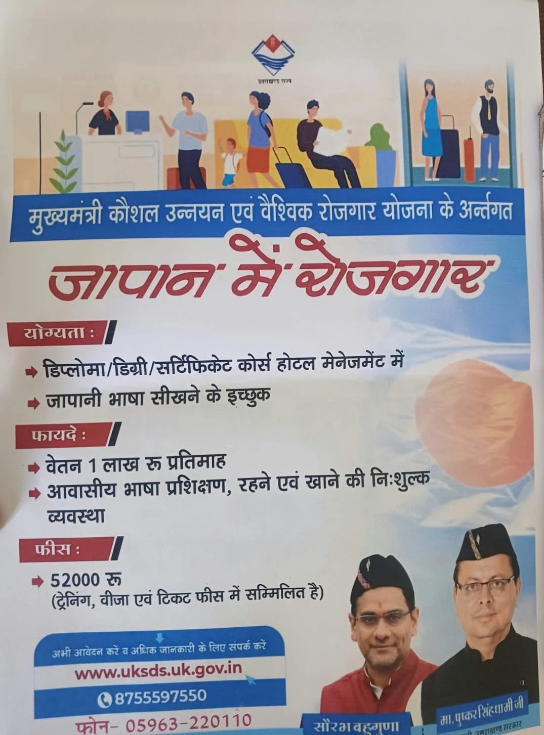 कौशल विकास एवं सेवायोजन विभाग, उत्तराखंड के विदेश रोजगार प्रकोष्ठ द्वारा जनपद के योग्य युवाओं को विदेशों में रोजगार उपलब्ध कराने के लिए विदेशी भाषा प्रशिक्षण हेतु मोबाइलाइजेशन की प्रक्रिया संचालित की जा रही है। इस पहल के अंतर्गत अब नए प्रशिक्षण बैच प्रारंभ किए जा रहे हैं, जिनमें विभिन्न क्षेत्रों के लिए पात्र अभ्यर्थियों से आवेदन आमंत्रित किए गए हैं। इन प्रशिक्षण बैचों के अंतर्गत जर्मनी में रजिस्टर्ड नर्स (GNM/B.Sc Nursing, आयु 21 से 35 वर्ष) तथा जापान में केयर गिवर हेतु 12वीं पास, एएनएम, जीडीए (केवल महिला, आयु 18 से 27 वर्ष) एवं हॉस्पिटैलिटी (आतिथ्य) क्षेत्र में 12वीं पास व एचएम में डिप्लोमा/डिग्री धारक (आयु 18 से 28 वर्ष) अभ्यर्थी आवेदन कर सकते हैं।