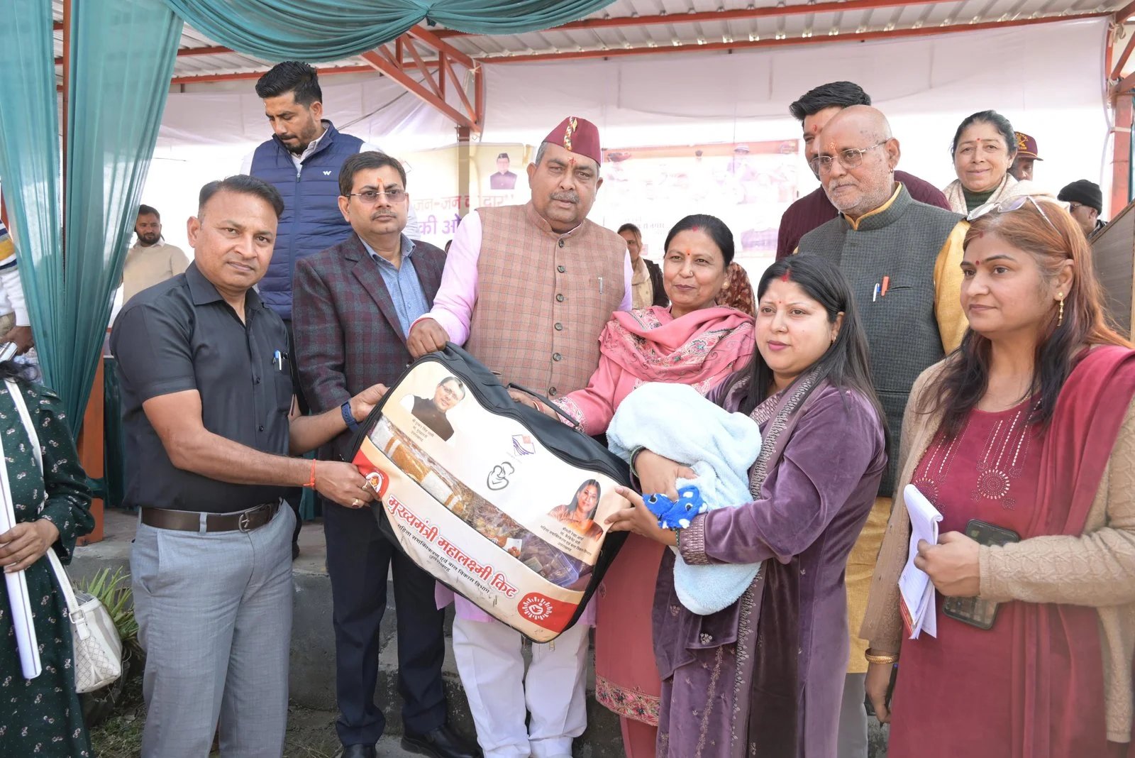 शिविर में कृषि विभाग द्वारा 80 प्रतिशत अनुदान पर स्वर्णा जैविक बासमती उत्पादक संगठन को 4 लाख रुपये की धनराशि से 02 पावर वीडर, 02 आटा चक्की, 03 चेक कटर, 05 स्प्रे मशीन तथा 01 ब्रश कटर सहित विभिन्न कृषि यंत्र वितरित किए गए। बाल विकास विभाग ने 05 महिलाओं को मुख्यमंत्री महालक्ष्मी किट तथा 10 लाभार्थियों को किशोरी किट प्रदान की। शिविर के दौरान 05 व्यक्तियों के आधार कार्ड का अद्यतन किया गया तथा 02 लोगों को मौके पर ही आयुष्मान कार्ड जारी किए गए।