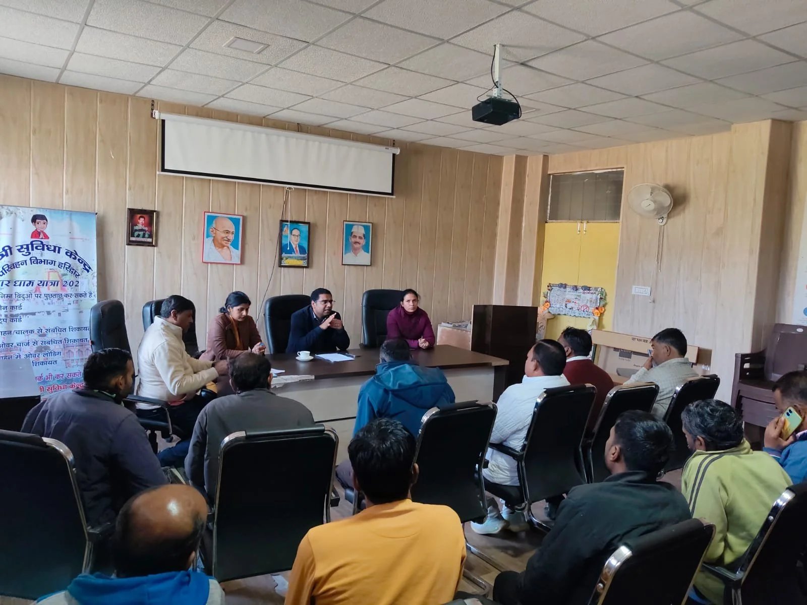हरिद्वार : सहायक संभागीय परिवहन अधिकारी (प्रशासन), हरिद्वार कार्यालय में ई-रिक्शा संचालन से संबंधित विषयों को लेकर एक महत्वपूर्ण बैठक आयोजित की गई। बैठक में नवोदय चौक, रानीपुर मोड़, बहादराबाद एवं लक्सर रोड क्षेत्र के ई-रिक्शा यूनियन के प्रतिनिधियों ने प्रतिभाग किया। बैठक की अध्यक्षता सहायक संभागीय परिवहन अधिकारी (प्रशासन), हरिद्वार निखिल शर्मा द्वारा की गई। बैठक में सहायक संभागीय परिवहन अधिकारी (प्रवर्तन), हरिद्वार नेहा झा तथा वरुणा सैनी, परिवहन कर अधिकारी (इंटरसेप्टर) भी उपस्थित रहीं।