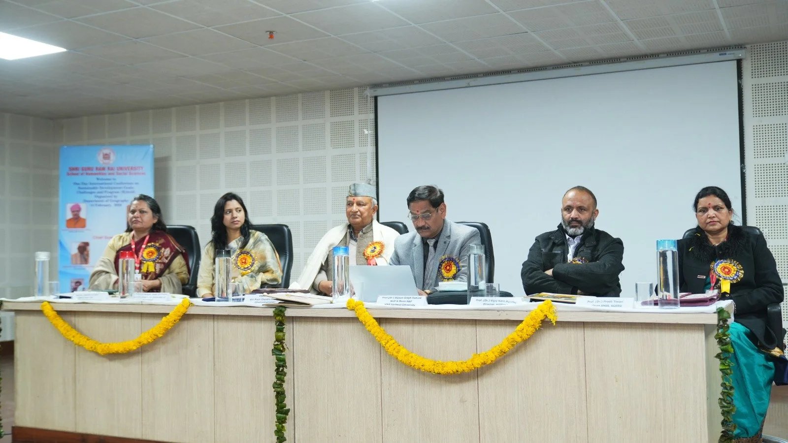 देहरादून। श्री गुरु राम राय विश्वविद्यालय के मानविकी एवं सामाजिक विज्ञान संकाय के अंतर्गत भूगोल विभाग द्वारा “सतत विकास लक्ष्यः चुनौतियाँ एवं प्रगति” विषय पर एक दिवसीय अंतरराष्ट्रीय सम्मेलन का सफल आयोजन विश्वविद्यालय के पथरीबाग परिसर स्थित सभागार में हाइब्रिड मोड में किया गया। सम्मेलन में देश-विदेश के शिक्षाविदों, शोधकर्ताओं एवं विशेषज्ञों ने सहभागिता कर पर्यावरण संरक्षण, जलवायु परिवर्तन, सामाजिक-आर्थिक विकास एवं सतत विकास लक्ष्यों से जुड़े विभिन्न पहलुओं पर अपने विचार प्रस्तुत किए तथा शोध-पत्रों के माध्यम से सहयोगात्मक अनुसंधान की संभावनाओं पर चर्चा की।