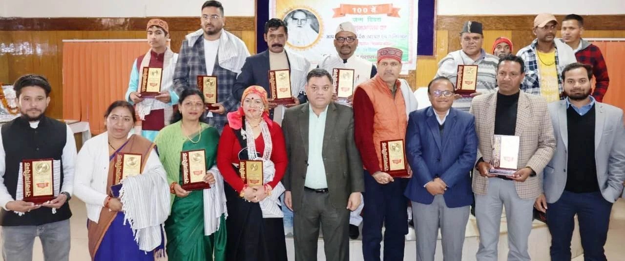 गोपेश्वर (चमोली)। चमोली जिले के विभिन्न स्थानों पर स्व. इंद्रमणि बडोनी के जन्म शताब्दी को धूमधाम से मनाया गया। उत्तराखंड राज्य आंदोलन के प्रणेता एवं माउंटेन गांधी के नाम से प्रसिद्ध स्व. इंद्रमणि बडोनी के 100वें जन्मदिवस के अवसर पर जिला पंचायत सभागार में सांस्कृतिक कार्यक्रम एवं कवि सम्मेलन का आयोजन किया गया। कार्यक्रम का शुभारंभ जिलाधिकारी गौरव कुमार ने स्व. बडोनी के छायाचित्र पर दीप प्रज्वलित कर एवं माल्यार्पण कर श्रद्धापूर्वक नमन करते हुए किया।