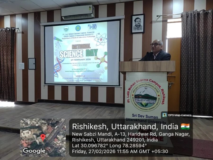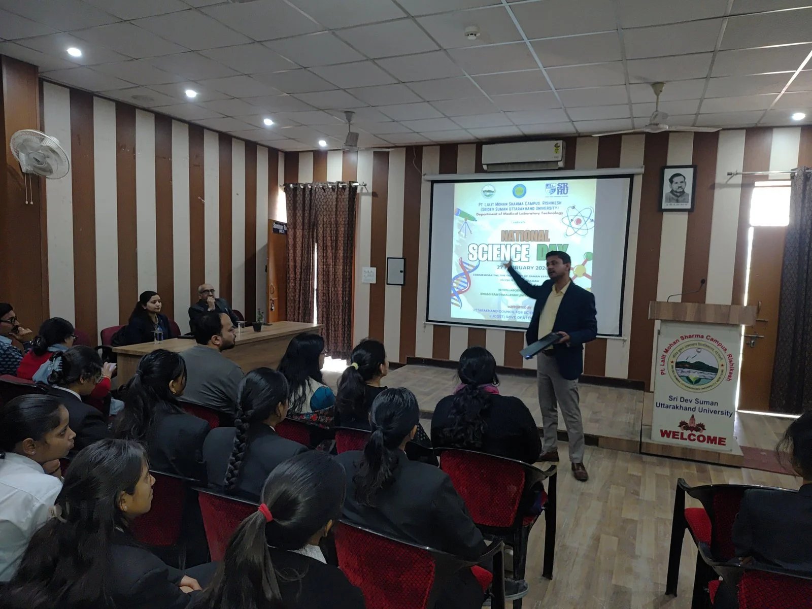 पंडित ललित मोहन शर्मा परिसर ऋषिकेश के निदेशक प्रो. एमएस रावत ने आये मुख्य वक्ता का स्वागत एवं धन्यवाद ज्ञापित किया व छात्रों को बताया कि राष्ट्रीय विज्ञान दिवस रमन प्रभाव की खोज के कारण मनाया जाता है। इस खोज भारतीय वैज्ञानिक सर चंद्रशेखर वेंकट रमन ने 28 फरवरी सन् 1928 को की थी। इसी खोज के लिये उन्हे 1930 में नोबल पुरस्कार दिया गया था।