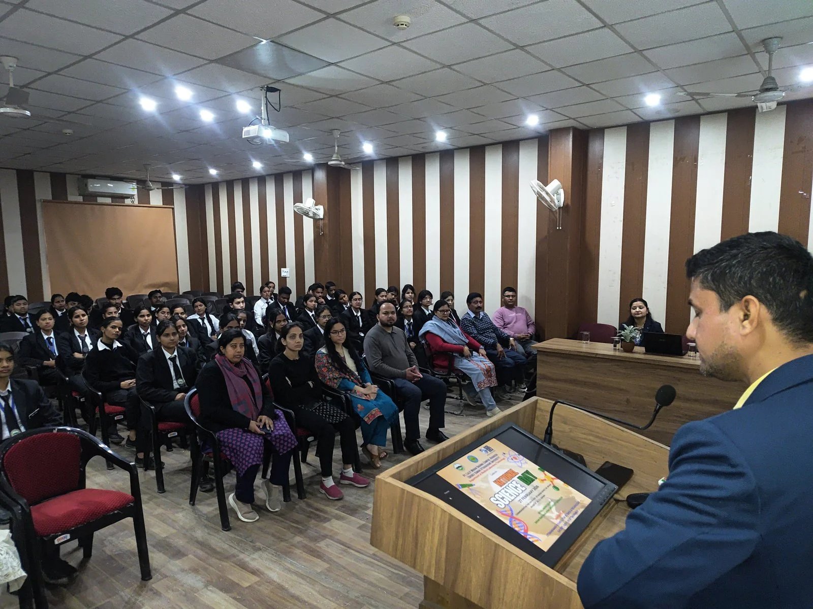 जिसमे वक्ता के रूप में स्वामी राम हिमालयन विश्वविद्यालय के डॉ. गौरव शर्मा, सहायक निदेशक, ऑनलाइन एजुकेशन व प्रियंका साह, एड्मिसन विभाग थे। डॉ. गौरव ने इस वर्ष की थीम Women In Science Catalysing Viksit Bharat पर विस्तृत चर्चा की व बताया कि महिलायें आज के दौर में हर क्षेत्र में बढ़ चढ़कर कार्य कर रही हैं जिसमें आर्टिफिशियल इंटेलिजेंस एक महत्वपूर्ण भूमिका निभा रहा है यह मानव बुद्धिमत्ता की तरह काम करता है। साथ ही उन्होंने टीचेबल मशीन के बारे में भी जानकारी दी उन्होंने बताया कि टीचेबल मशीन एक वेब-आधारित टूल है जो मशीन लर्निंग मॉडल बनाने में मदद करता है, बिना कोडिंग के। यह गूगल द्वारा विकसित किया गया है और इसका उपयोग करना बहुत आसान है। टीचेबल मशीन के द्वारा हम इमेज क्लासिफिकेशन कर सकते है, पोज़ एस्टिमेशन, गेम डेवलपमेंट व ऑडियो को क्लासिफाई कर सकते जैसे कि संगीत की पहचान करना, साथ ही उन्होंने GPT के बारे में भी बताया कि यह एक प्रकार का आर्टिफिशियल इंटेलिजेंस मॉडल है जो टेक्स्ट जेनरेट करने में मदद करता है।