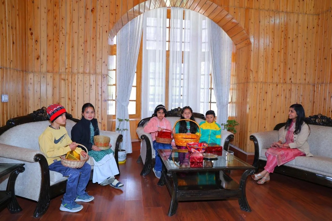 जिलाधिकारी स्वाति एस. भदौरिया ने बच्चों का आत्मीय स्वागत करते हुए उन्हें स्नेहपूर्वक उपहार प्रदान किए और उनका उत्साहवर्धन किया। इस दौरान उन्होंने बच्चों से संवाद कर उनके सपनों, पढ़ाई और भविष्य के लक्ष्यों के बारे में भी जाना। जिलाधिकारी ने बच्चों को लगन और परिश्रम के साथ अपने लक्ष्य हासिल करने के लिए प्रेरित किया तथा पढ़ाई के साथ अपनी लोकसंस्कृति और परंपराओं से जुड़े रहने का संदेश दिया।