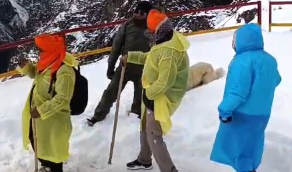 गोपेश्वर (चमोली)। उच्च हिमालय में स्थित हेमकुंड साहिब इलाके में भारी बर्फवारी के बीच श्रद्धालु दर्शनों के लिए हाथ पांव मार रहे हैं। इस दौरान पुलिस कर्मी तीर्थयात्रियों का हाथ थाम कर यात्रा करवा रहे हैं।