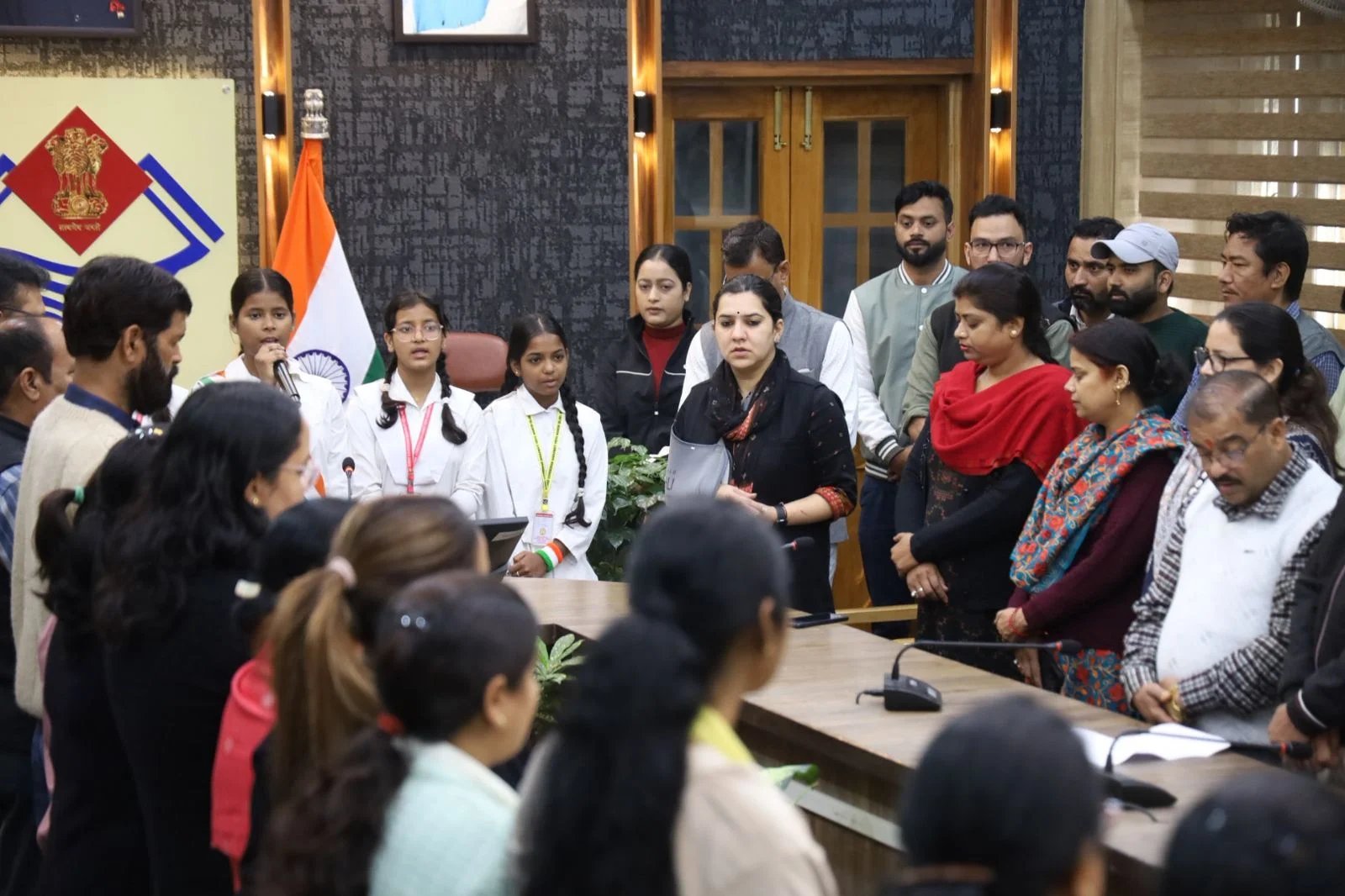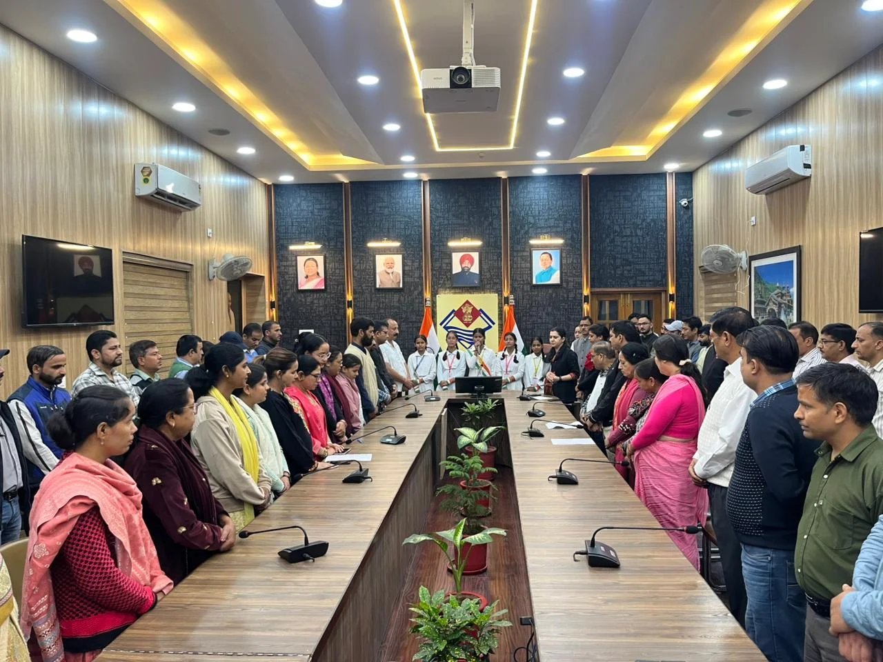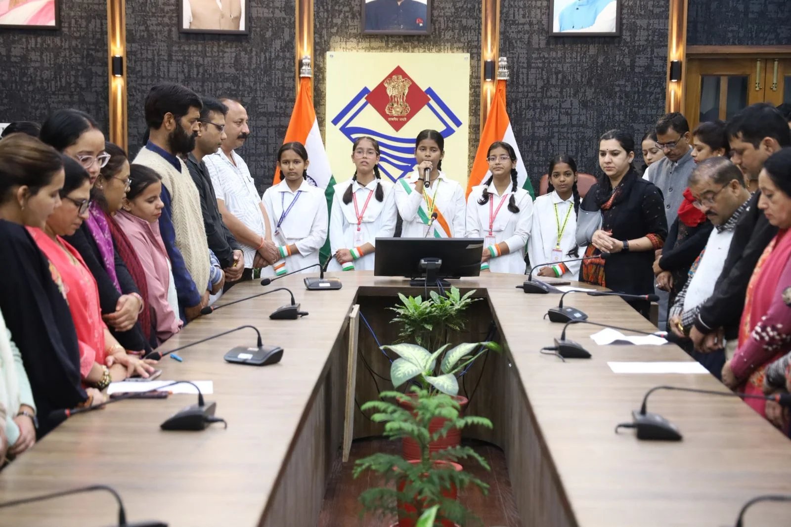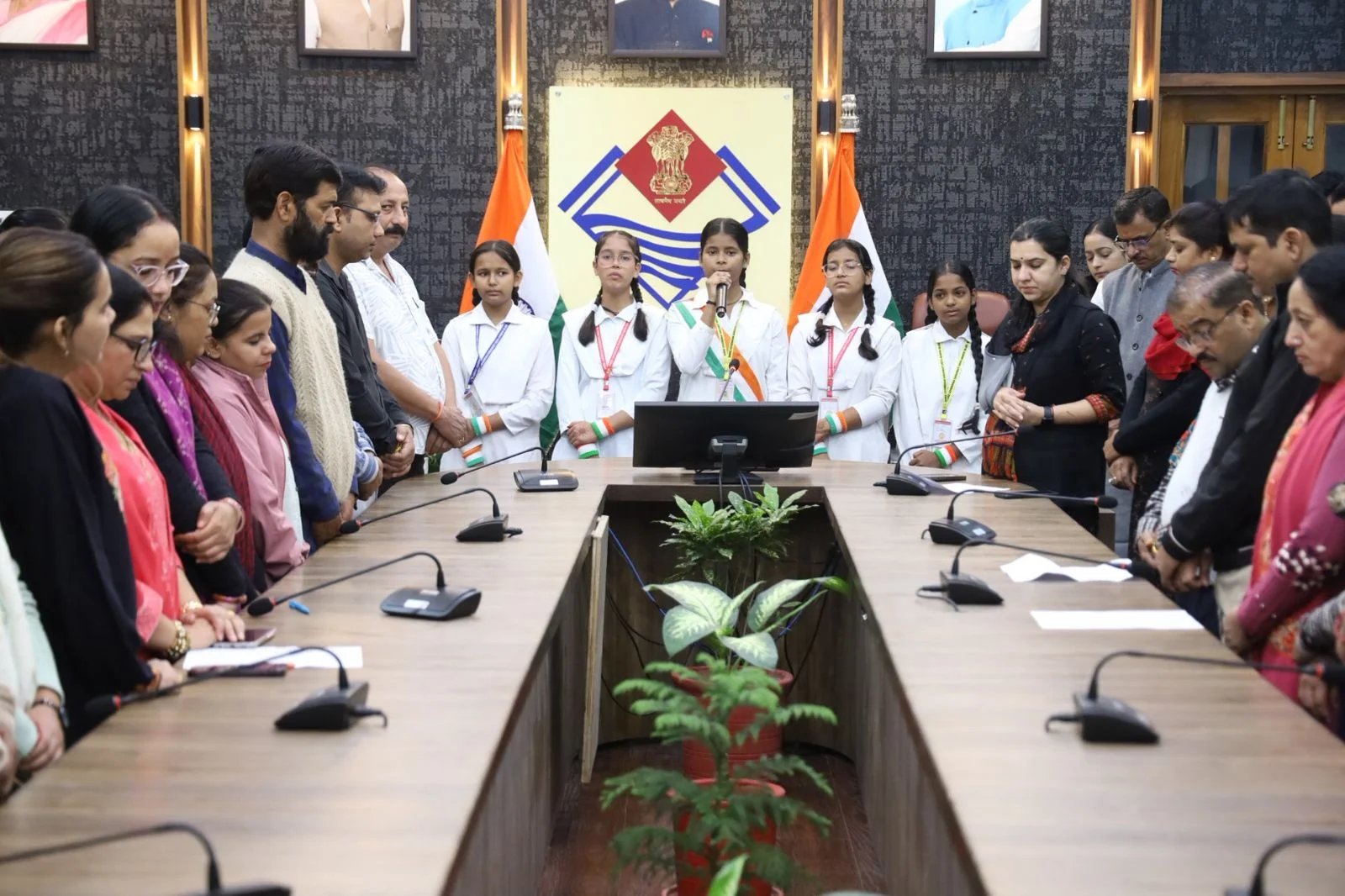 देहरादून : भारत वर्ष के राष्ट्रगीत ‘‘वंदे मातरम्’’ के 150 वर्ष पूर्ण होने के अवसर जनपद के सभी सरकारी, गैर सरकारी कार्यालयों, शिक्षण संस्थानों एवं सामाजिक संगठनों में प्रातः 10 बजे ‘‘वंदे मातरम्’’ का गायन किया गया। जिलाधिकारी सविन बंसल के दिशा निर्देशन में जिला कार्यालय में उप जिलाधिकारी अपूर्वा सिंह की मौजूदगी में क्लेक्ट्रेट परिसर के समस्त अधिकारियों, कार्मिकों एवं श्री गोर्वधन सरस्वती विद्या मंदिर की छात्राओं की उपस्थिति में वंदे मातरम् का सामूहिक गायन किया गया। इस मौके पर देशभक्ति से ओत-प्रोत वातावरण में अधिकारीगण, कार्मिक, शिक्षक, विद्यार्थी सभी उत्साहपूर्वक शामिल हुए।